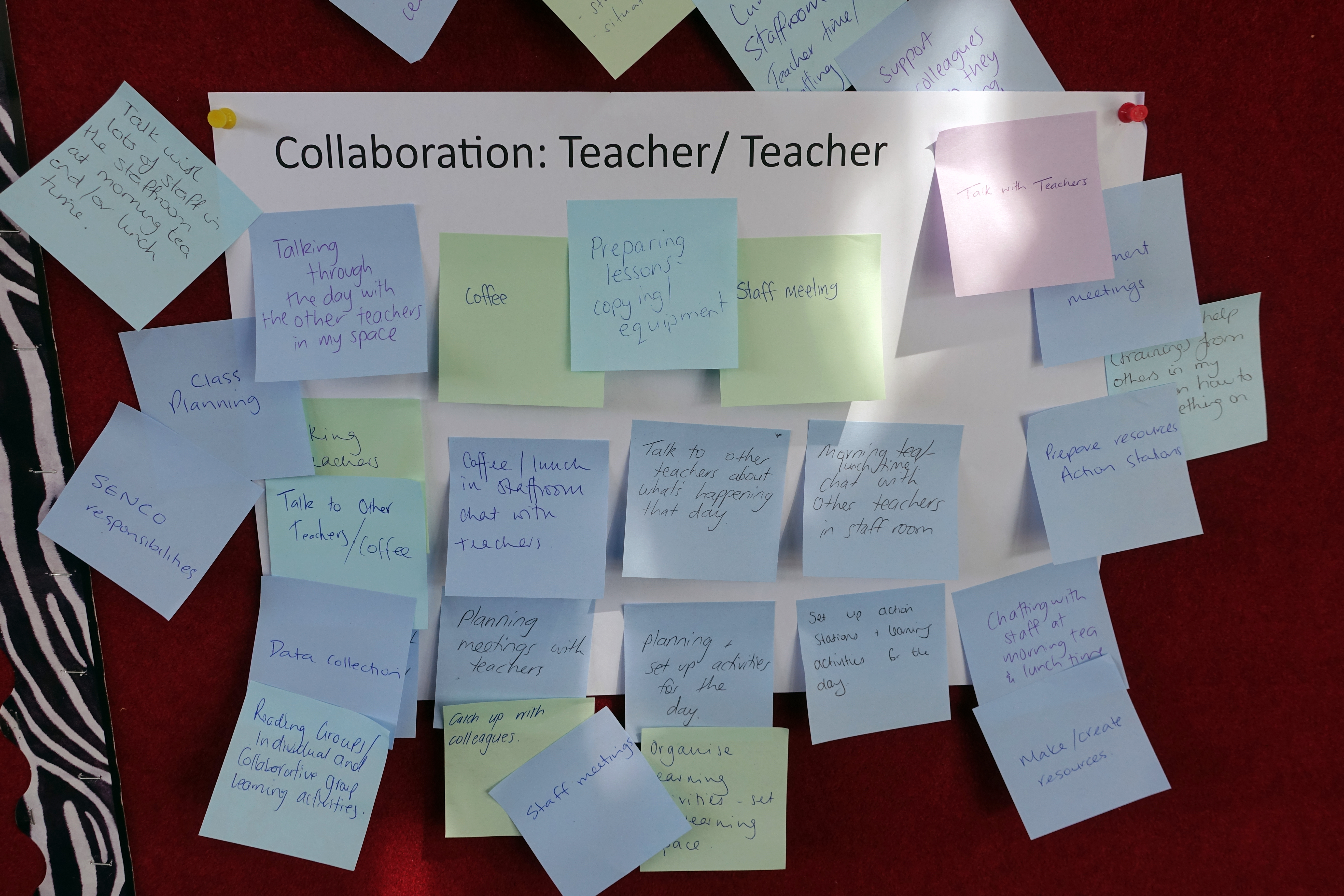 Initial appreciative inquiry allowed staff to identify the ways in which collaboration was already happening. This was used to unpack the meaning and purpose of collaboration at the school and to create the beginnings of a shared vision. Future actions were then established. These were included in the following themes: