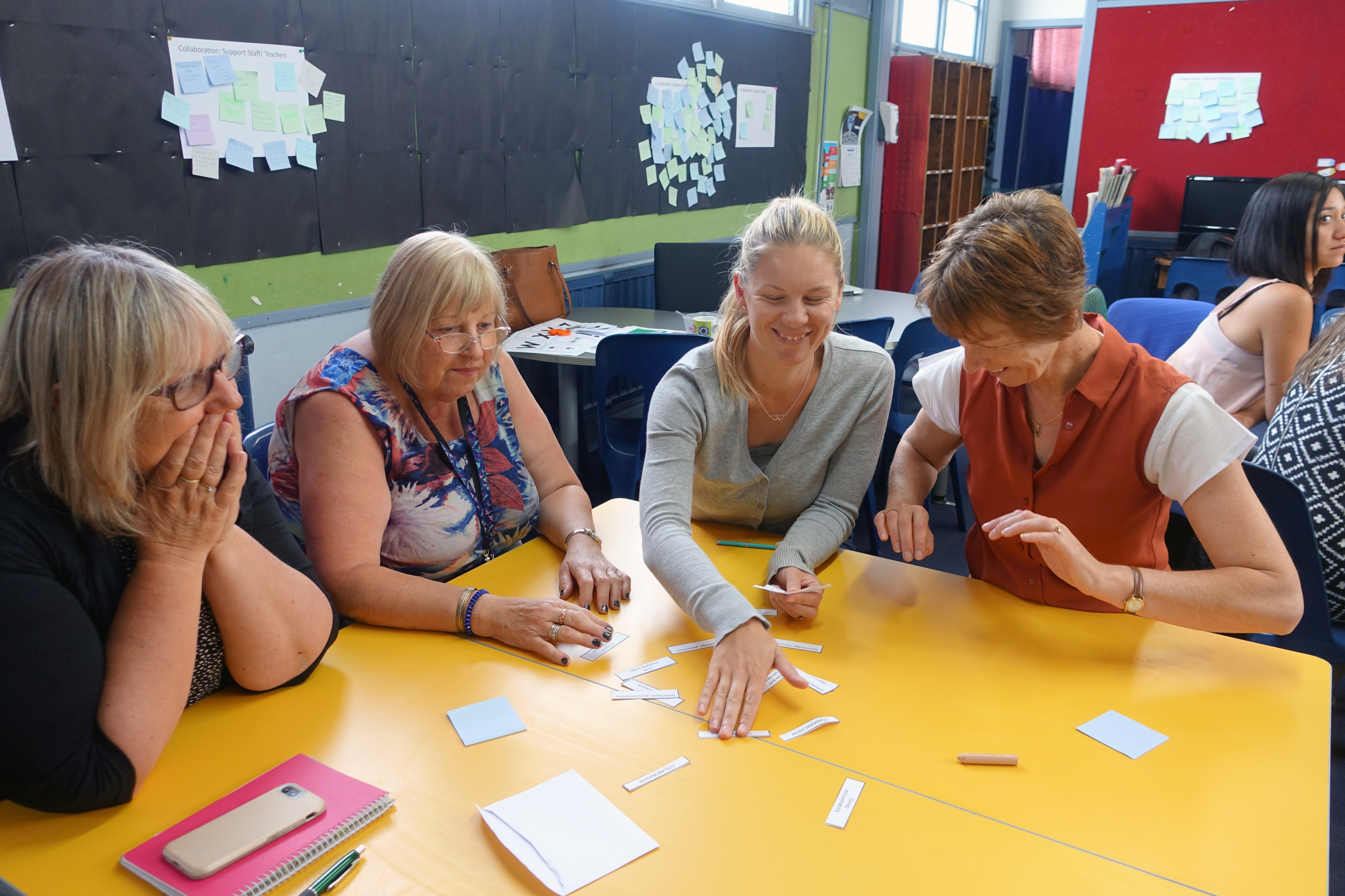 Sockburn School was eligible for Grow Waitaha support to further explore and develop solutions to their challenge question. The scoping process for this allowed the leadership and Grow Waitaha team to identify a real need to understand collaboration more fully. This became the focus of a co-constructed teacher only day in which the following questions were explored with staff: